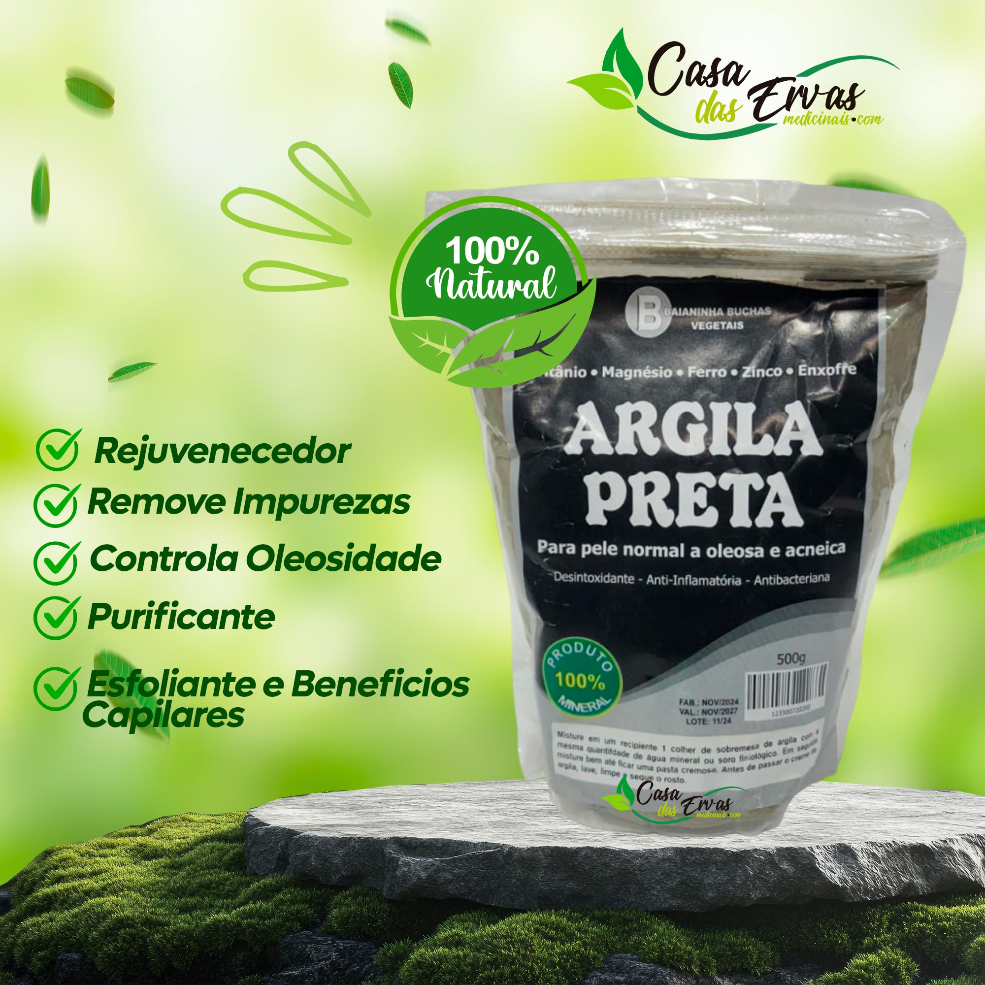 A Argila Preta é um mineral natural rico em nutrientes e oligoelementos, muito utilizada em tratamentos estéticos por sua ação purificante e revitalizante.