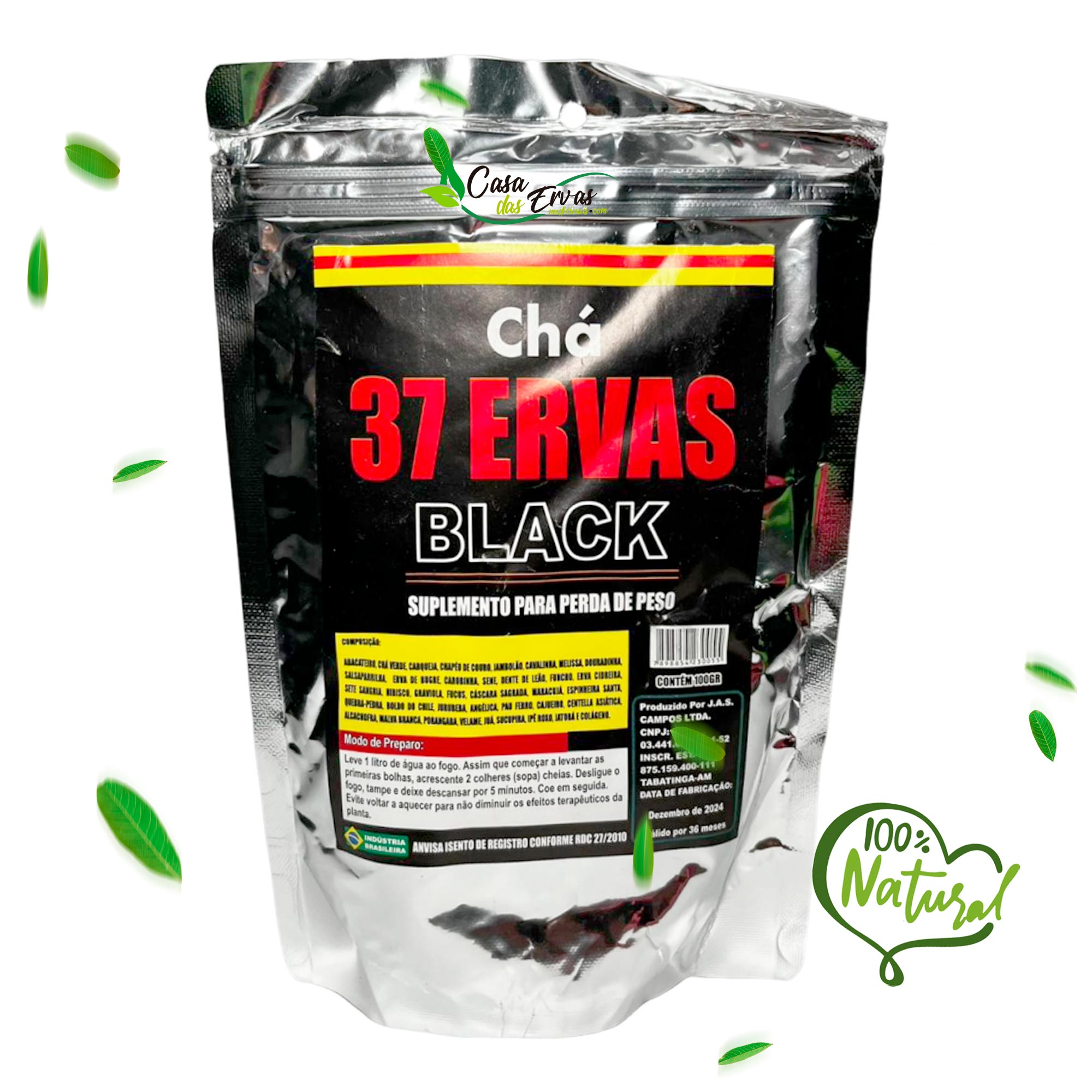 O Chá 37 Ervas Black é um blend completo com 37 plantas selecionadas, cuidadosamente combinadas para proporcionar bem-estar, leveza e uma experiência saborosa 💚. Sua fórmula reúne ervas tradicionalmente utilizadas para o equilíbrio do organismo e para complementar uma rotina saudável 😌. O sachê laminado garante melhor conservação, preservando aroma, sabor e qualidade por mais tempo.