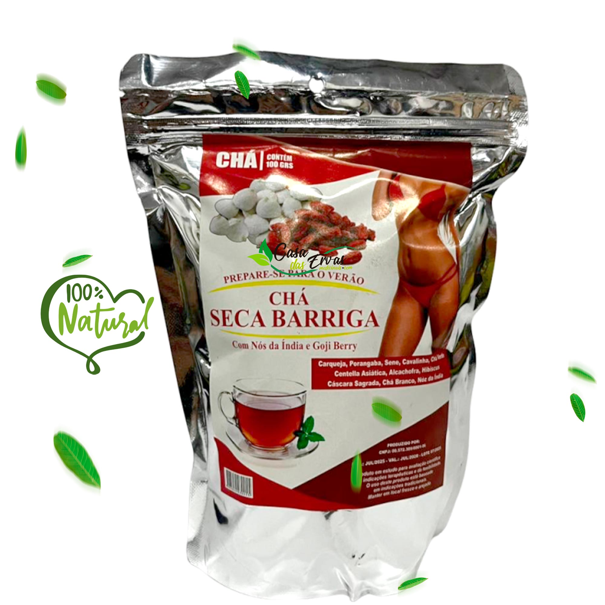 Carqueja, Porangaba, Cavalinha, Chá Verde, Centella Asiática, Alcachofra, Hibisco, Cáscara Sagrada, Chá Branco, Nozes, Goji Berry.